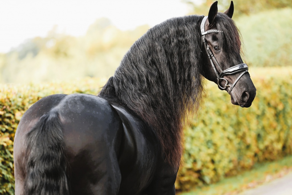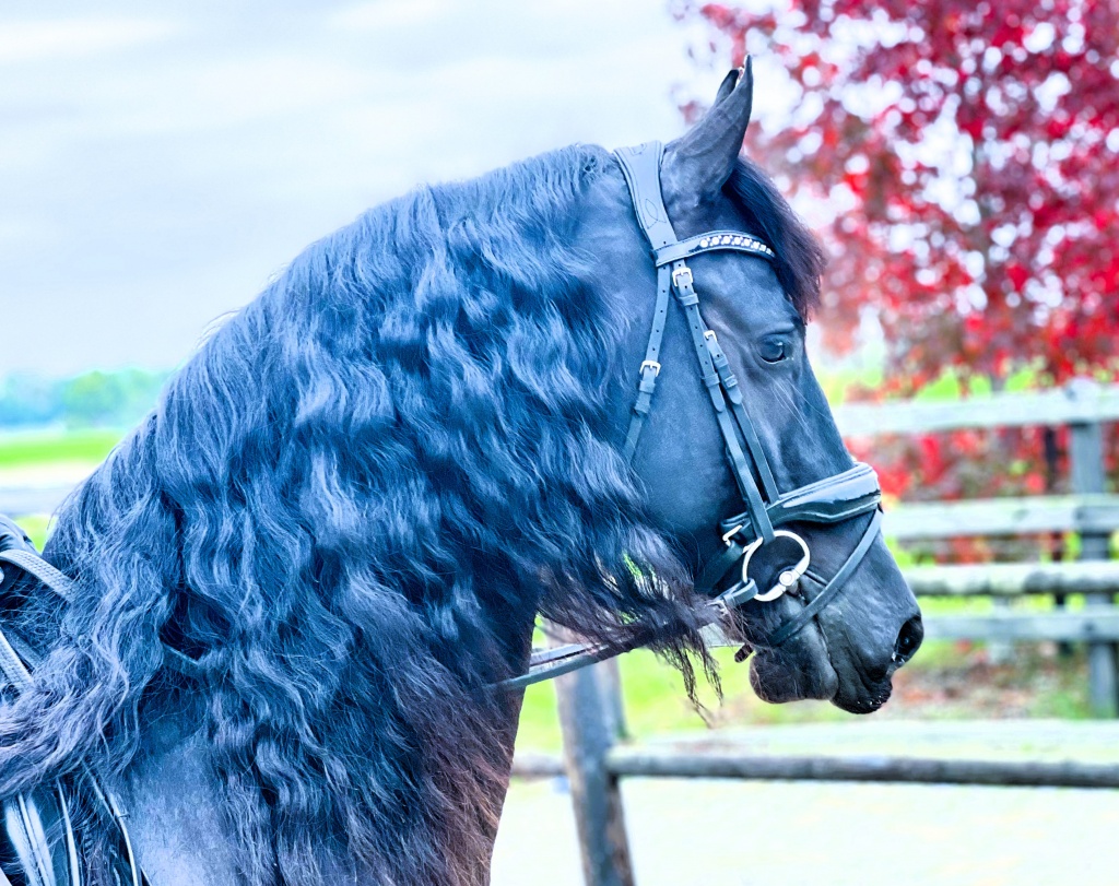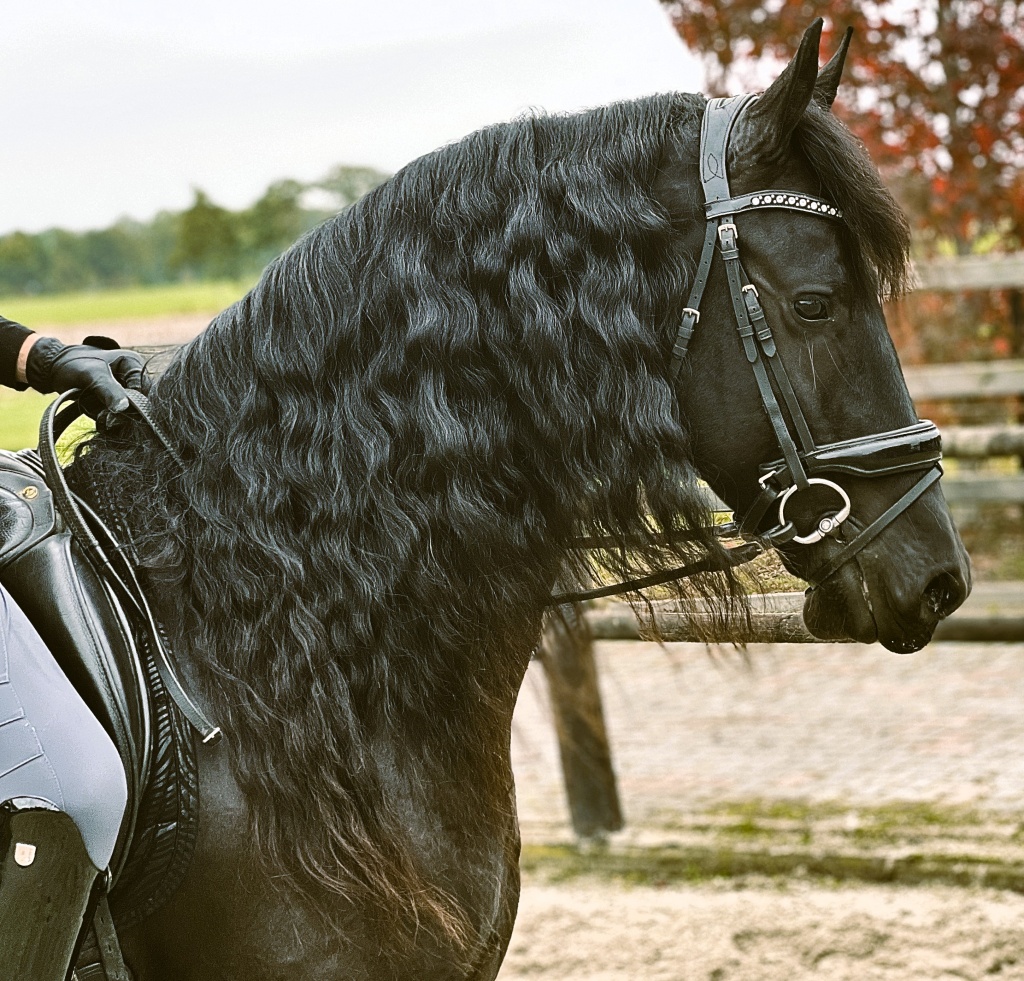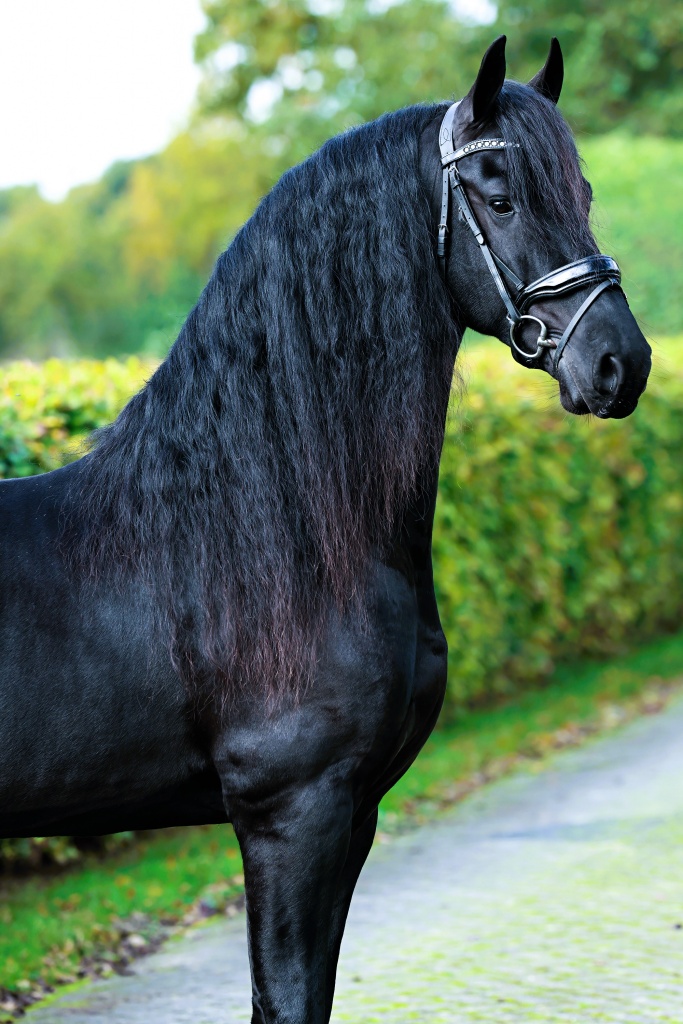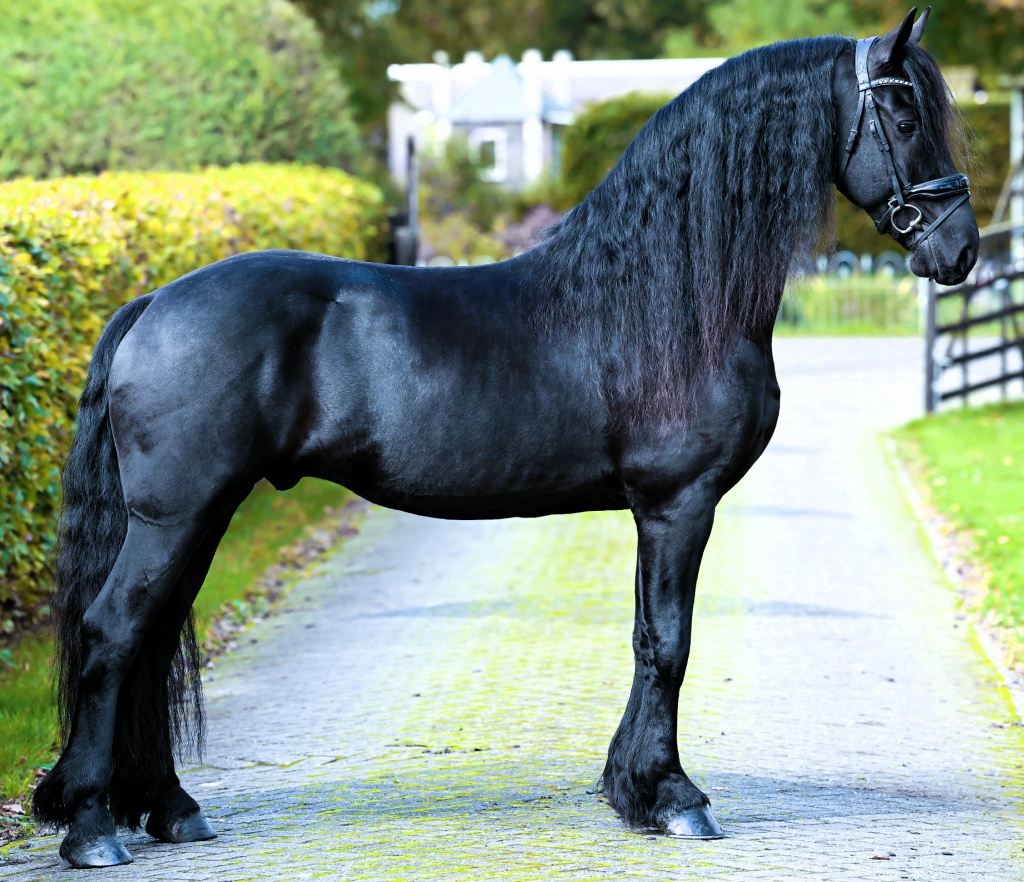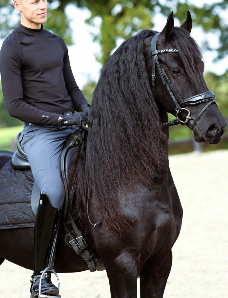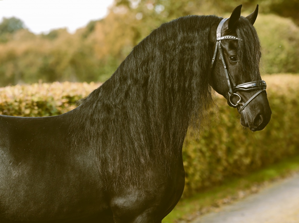 This gorgeous LONG haired jet black boy looks like he is straight off an Italian runway, Portenzo embodies the bold elegance and effortless grace Friesians are known for.