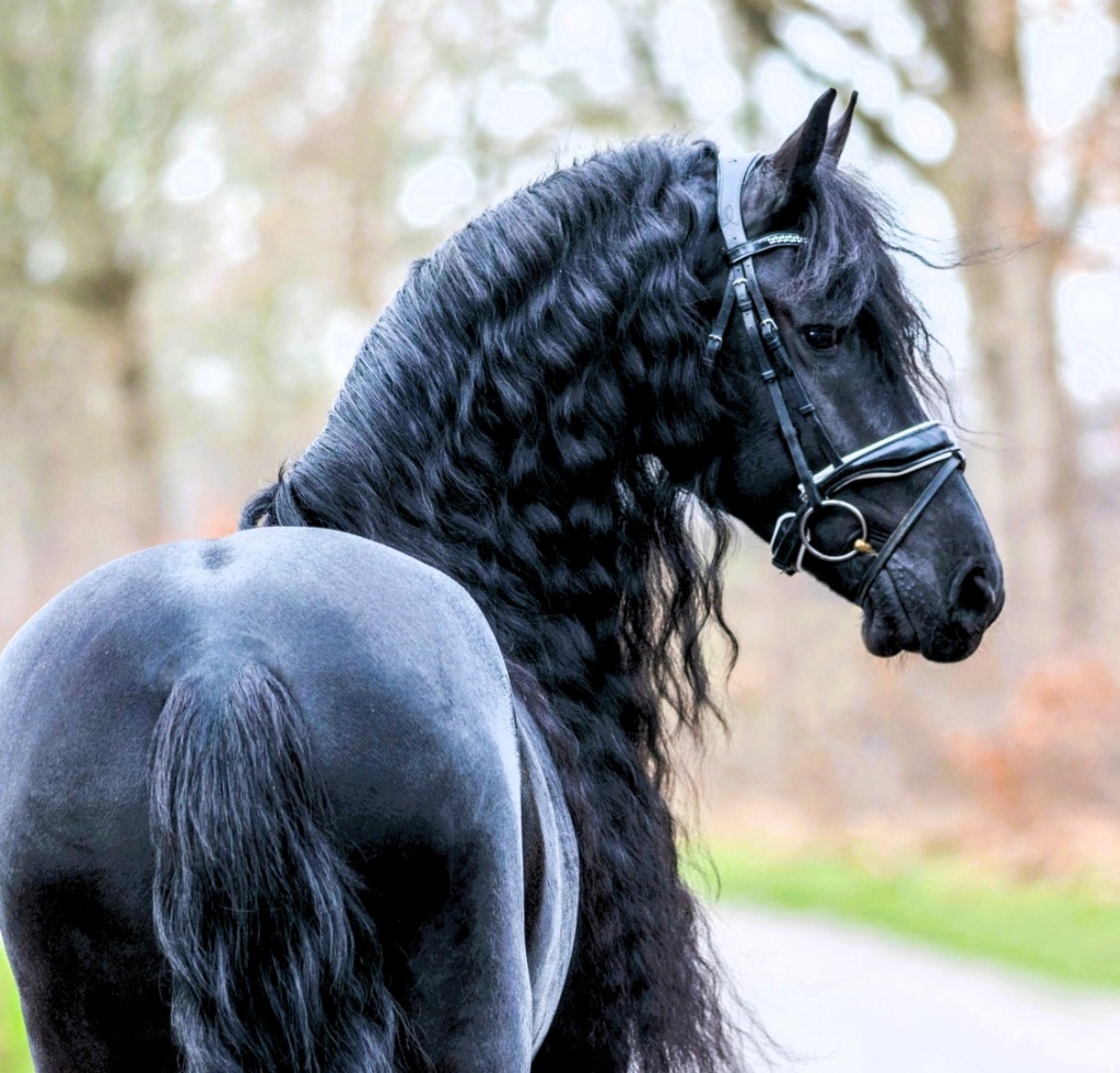 Arturo is a remarkably well-built athlete, boasting a powerful frame and correct, sturdy legs. His physical beauty is matched only by his soulful, sweet expression and a thick, flowing mane that captures the classic Friesian silhouette.